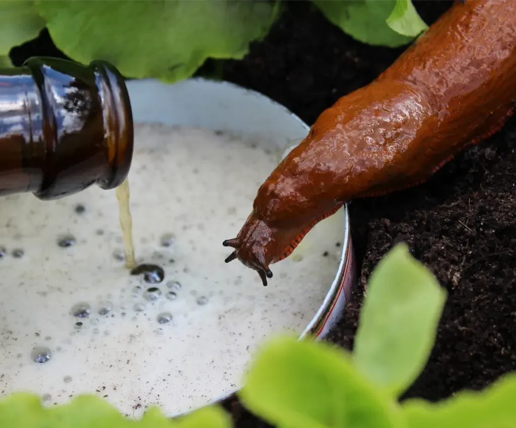 Bury a shallow container in the soil and fill it with beer. Slugs are drawn to the smell and fall in.